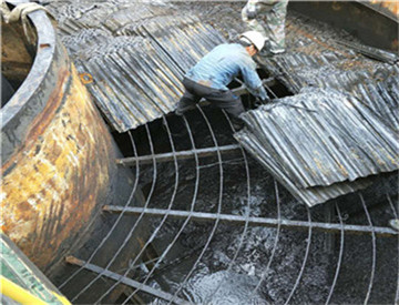 由于斜管填料比重為0.92略小于水,斜管填料在池內組裝到位后需要在填料上方自左向右方向拉上 14mm的圓鋼進行加固(每個單元填料上部要求有兩根圓鋼通過),圓鋼兩端在沉淀池池壁上可靠固定,安裝圓鋼后可以很好地防止斜管填料在初期使用時有可能發生的松動上浮現象,圓鋼采用環氧煤瀝青防腐處理。